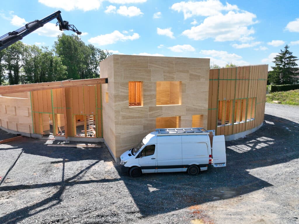 La cave Nebout, à Saint Pourçain sur Sioule, passe au bois paille. Véritable enjeu technique pour ses murs, le projet s’est développé sur la base des qualités intrinsèques du mur à ossature bois-paille. De la pierre massive a été choisie en complément architectural pour définir cette enveloppe aux formes arrondies qui s’intègre parfaitement à l’environnement. Activ’Home a pu collaborer avec l’entreprise Sucheyre et sous la direction de l’architecte Charles Coulanjon.